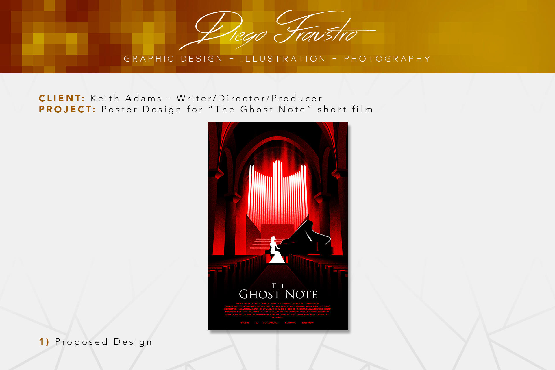One summer day in 2023, while relaxing and watching videos online, I came across a YouTube channel featuring horror short films, each with millions of views. What immediately caught my attention was how professionally crafted these films were, they looked like they came straight out of Hollywood. Intrigued, I watched a few and discovered one that completely captivated me: a short film titled 'Chromophobia'. The director, intriguingly, was credited as Keith Adams.Being naturally curious, I decided to dig deeper, hoping to find more of Keith’s work. Instead, I stumbled upon his website, which had a contact section. On a whim, I decided to write him a message, congratulating him on 'Chromophobia'. As part of the process, I included my email address and linked my illustration portfolio.To my complete surprise, Keith responded. Not only was he impressed with my illustration work, but he also invited me to create the poster for his upcoming film, 'The Ghost Note'. I was absolutely mind-blown. Never in my wildest dreams did I imagine that I would make my debut in the film industry in such an incredible way.Since I don't want to spoil the plot of the short film, I’ll focus on the workflow process for this project. A year after I was hired (in the summer of 2024), Keith gave me the green light to begin working on the poster. He provided numerous references and a clear vision for what he wanted.The key elements to incorporate were the silhouette of the lead protagonist, a piano, a pipe organ, and a church. The atmosphere needed to convince the viewer that the church was haunted. Many of the references Keith shared were posters from existing films, which made it obvious that I had to take a Film Noir approach for the design.After a lot of work and experimentation, I ultimately created this: