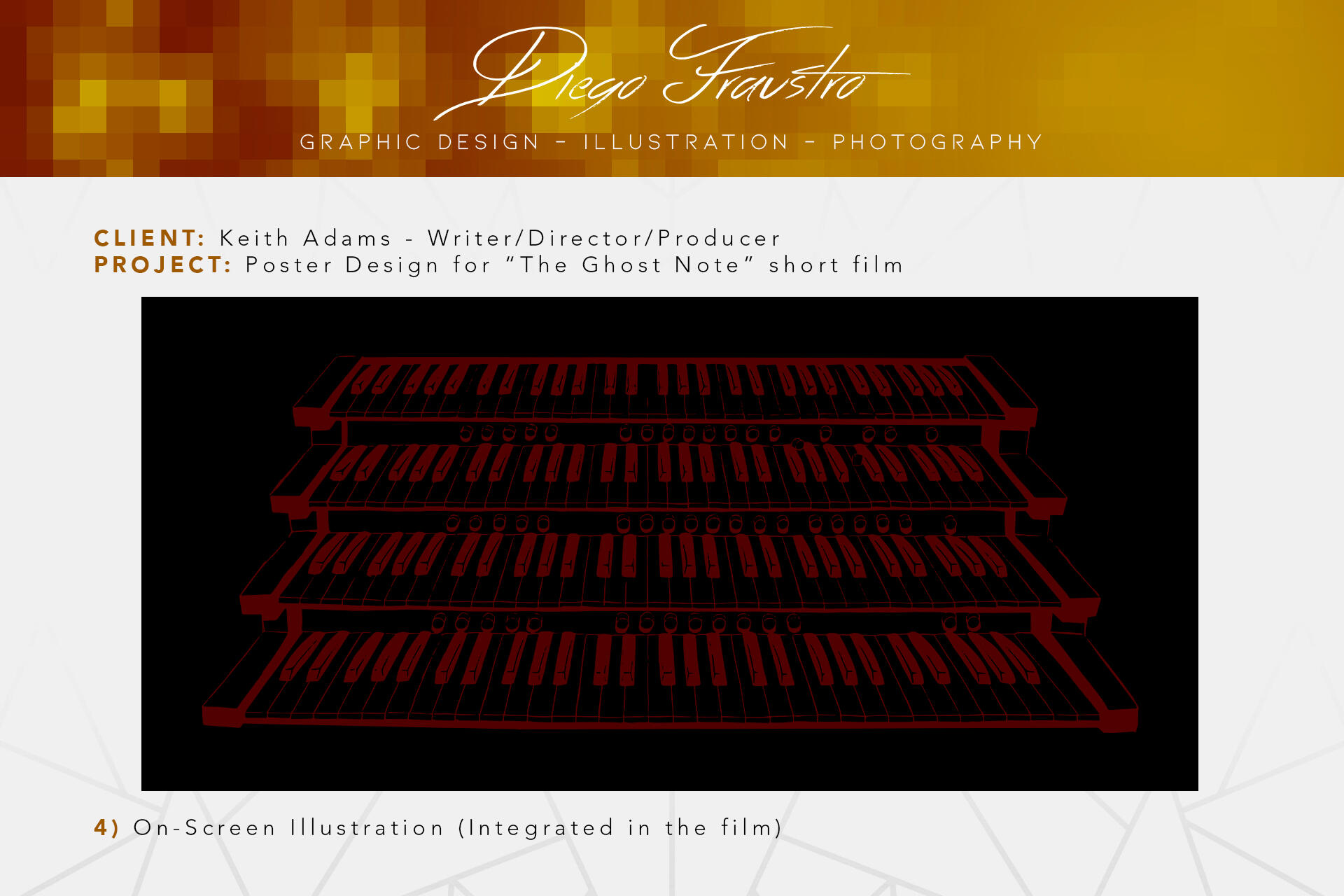 Finally, Keith requested a hand-drawn illustration of four rows of keys, representing the organ's keyboard. The drawing had to have an organic, hand-crafted feel. This artwork was then featured at the end of the film's trailer.